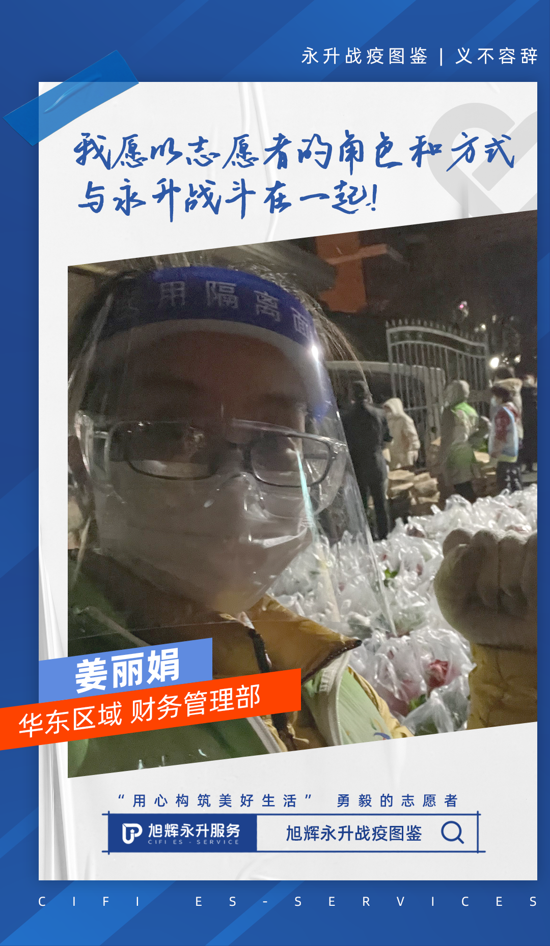 每次在工作群内看到华东区伙伴们抗疫的艰辛和付出,我都倍受感动,也庆幸自己能以志愿者的身份与他们战斗在一起。希望永升伙伴们保护居民的同时,也保护好自己,我们一起早日打赢这场仗!