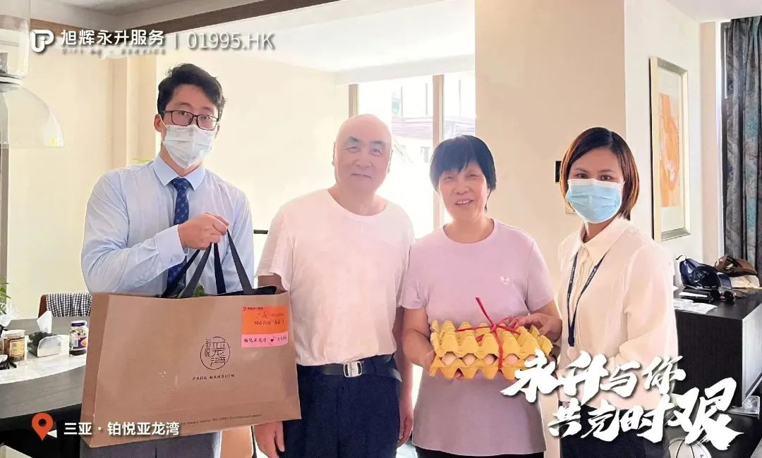 8月1日三亚突发疫情,8月3日全市进行管控。面对突发情况,坚守岗位,保证项目的正常运行、保障客户的正常生活从来都旭辉永升人第一选择。因此,三亚铂悦亚龙湾项目21名员工全部选择留守,他们中有3人年过五旬,多半家中有小孩需要照料,还有一位是双胞胎的准爸爸。