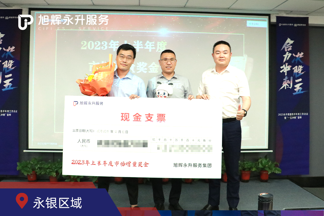 2023年,旭辉永升服务各区域在外部市场环境极其严峻的情况下,坚持有质量的市场拓展,坚持专业制胜,团队上下同心,职能高效协同,多个区域在市拓方面有不错的成绩。