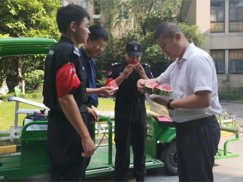 他们制作绿豆汤、酸梅汁、冰镇西瓜、早餐等等美味,在炎炎夏日为业主、为员工、为社会人士送上清凉,致敬高温下的劳动者,让关爱沁入心田。每一口的清凉冰爽,都是萦绕在舌尖上的甜蜜和满足。