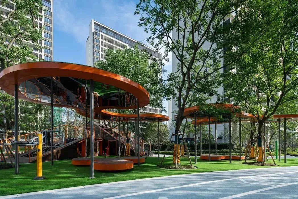 旭辉和风花园项目采用公园风森林系的设计居住理念,布置了多片主题林带,如水杉林、香樟林、乌桕林、无患子林等,结合步行系统设置具有季节观赏价值的樱花道、栾树道开花色叶植物,地被以多年生花境、常规灌木以及水生植物、观赏草等,同时融入海绵城市理念,以此打造自然、有趣、有人情味的目标愿景,将自然带入社区,带入平时的生活场景。