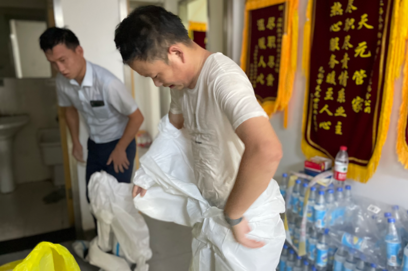 浑身湿透的永升人
