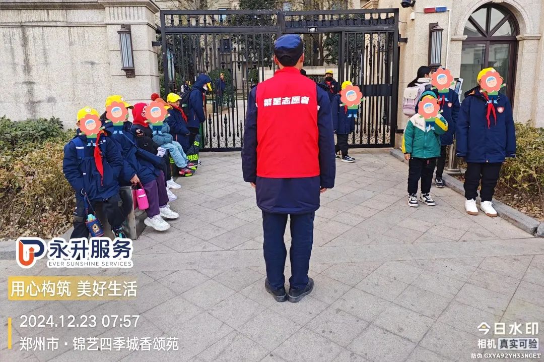 在守护孩子学习成长之路上,香颂苑物业服务中心秩序团队员工则主动请缨,轮流在小区北门交通路口护送孩子上下学。如今,已经形成了常态化护学岗。“孩子们的安全可是头等大事!现在有了这个护学岗,孩子们上学放学必经路口都有人看着,家长们可放心多了”。业主李女士激动地说。