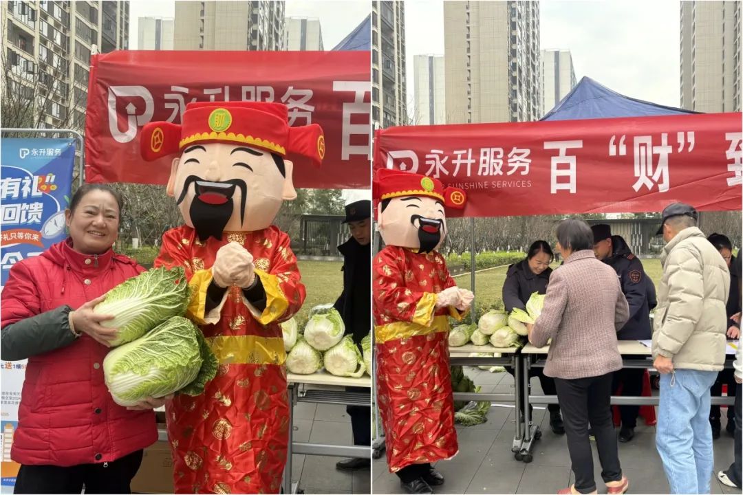 去年冬至,旭辉美的东樾城举办的“百‘财’到家‘蔬’送美好”活动大受欢迎,累计送出大白菜超500颗。业主们排队领到白菜都很开心:“白菜家家户户都需要,寓意也很好,物业用心了”。