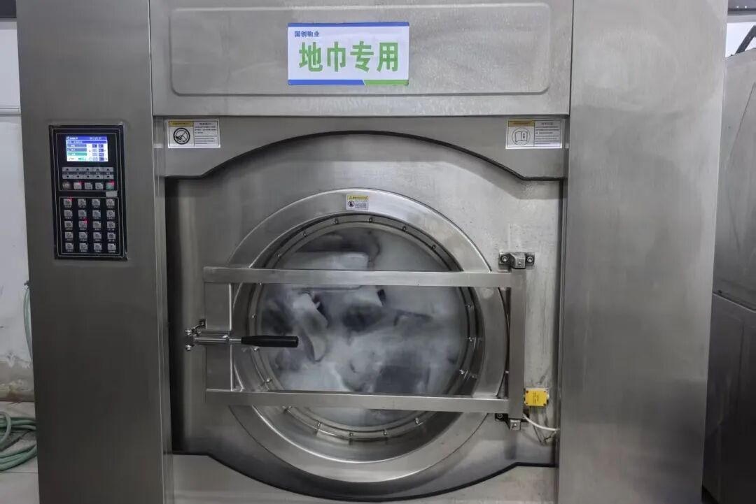 毛巾地巾洗消中心实行“集中回收、分类清洗、高温消毒、统一发放”的全流程闭环管理。80℃高温清洗叠加紫外线消毒,密封配送至各病区,全程杜绝交叉感染,同步实现保洁工具可追溯、可监控。将保洁作业从依赖经验的传统操作,全面转向可监控、可追溯、可评估的科学化管理体系。“有了洗消中心,每块毛巾都可追溯来源,我们更放心。”儿科护士长坦言道。