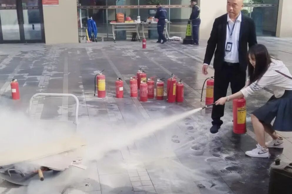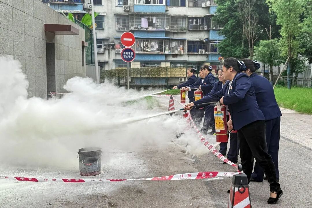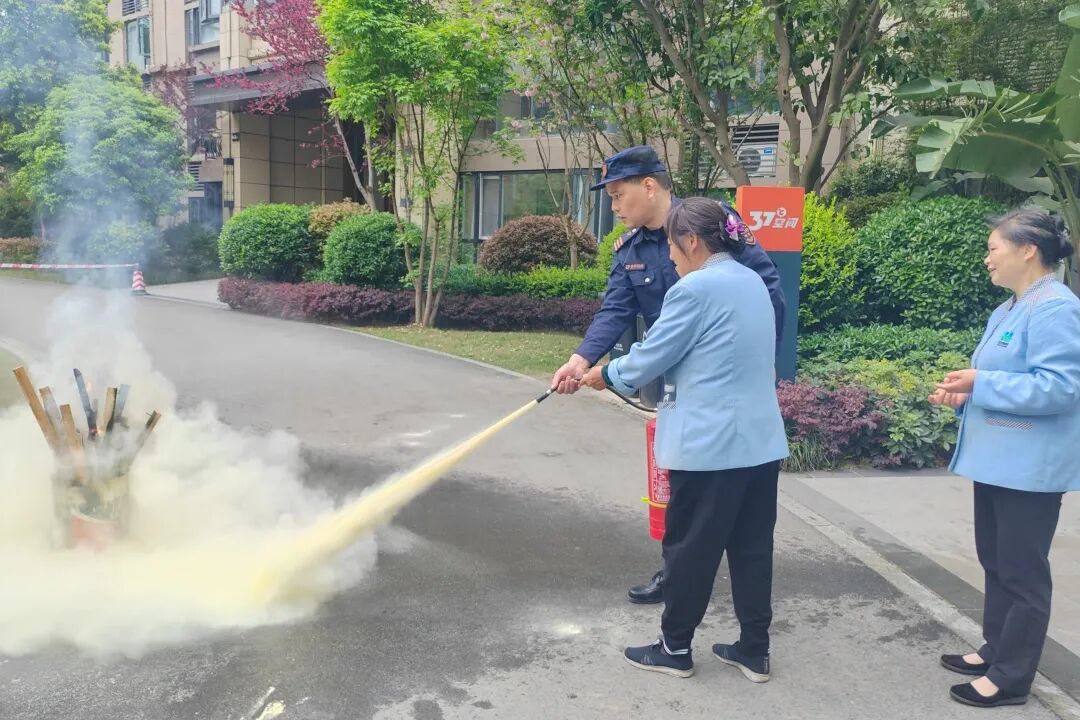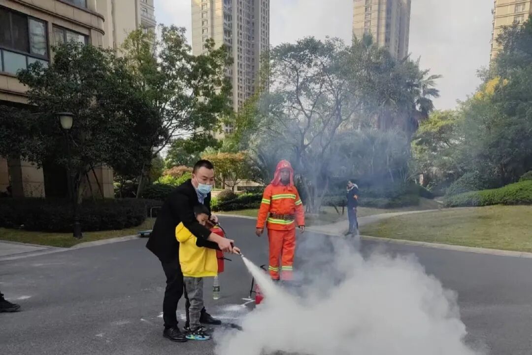 演练现场的“灭火实操区”,邀请客户、业主亲手操作学习使用灭火器,在专业指导下掌握“提、拔、握、压”四步法,让安全知识从“纸上”落到“手上”。