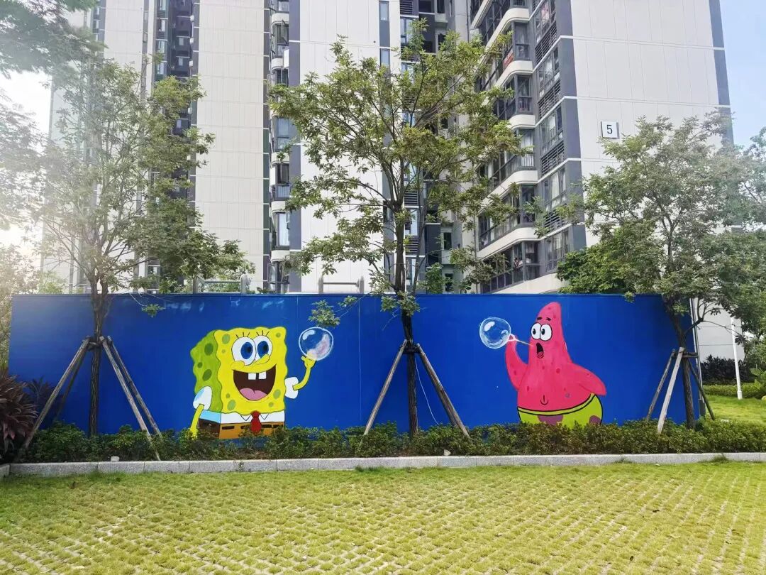 在南宁五象一号,物业团队将哪吒、敖丙等国漫形象生动地呈现在墙面上。这份用心使得小区原本冷清的角落焕然一新,变成了孩子们的社区乐园。