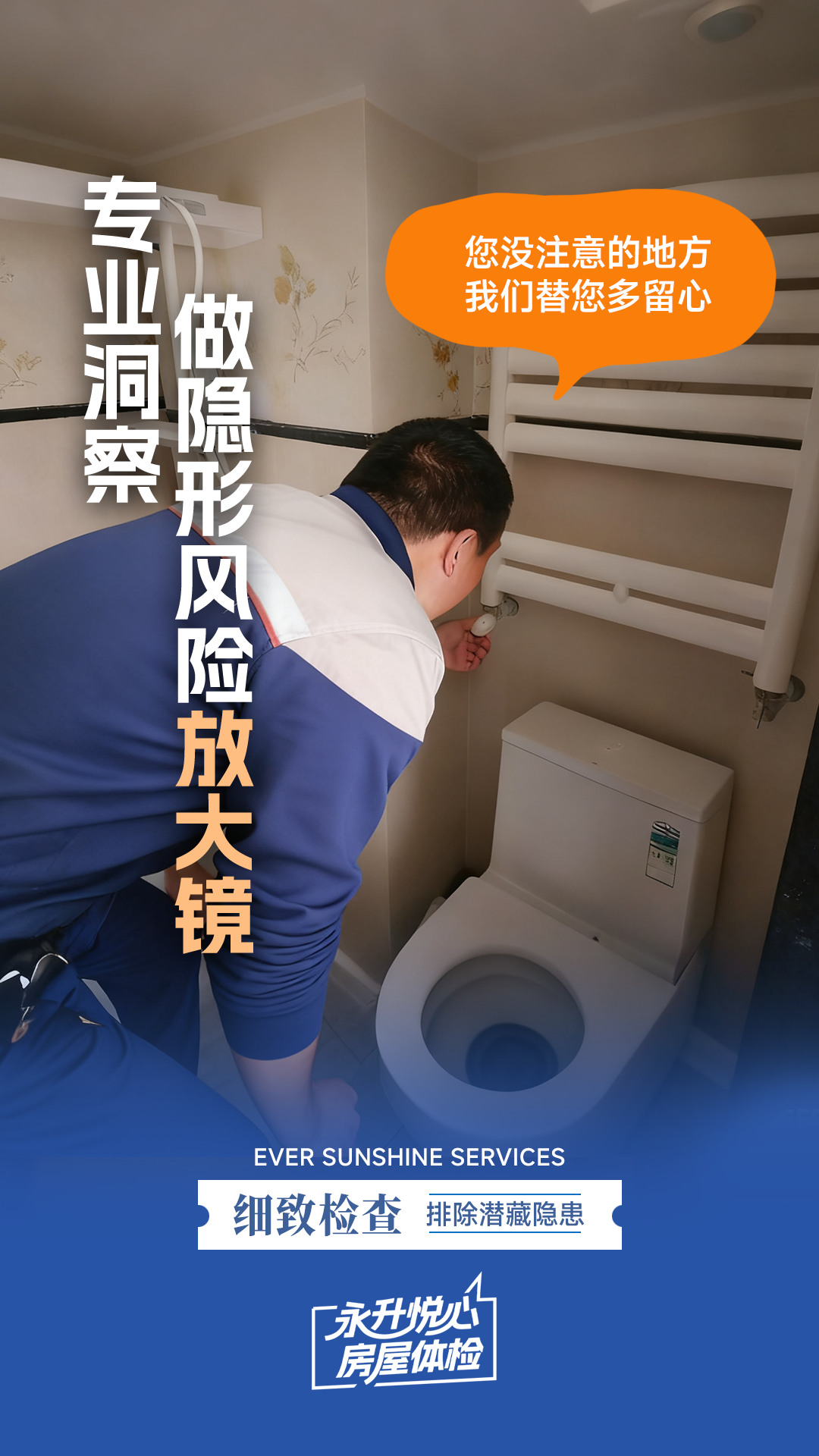 一次专业洞察,预见潜在风险;一次精准排查,化解隐形危机。永升悦心房屋体检用敏锐洞察和扎实技能,为业主宽忧解难,这便是永升团队源自专业的底气。