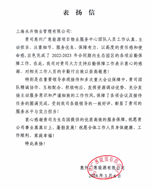 未来永升服务团队将继续秉持这份匠心,与惠州市生态环境园全体伙伴携手,在守护绿水青山的同时,共同书写现代服务业与环保事业融合发展的新篇章。